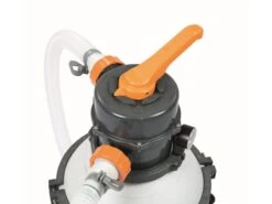 Capaciteit: 3,0 m³/u. Voor zwembaden van 1100-16000 ltr. Duurzame, corrosiebestendige filtertank. 6-weg klep. Ingebouwde timer. Gemakkelijk afleesbare manometer. Incl. ChemConnect Dispenser. Deze zorgt voor gereguleerde afgifte van het chloor en een stabiele chemische balans. Met strainer, adapters en slangen. Past op de meeste bovengrondse zwembaden en wordt gevuld met zand of met het praktische Polysphere/Aqualoon. Ø tank: 27 cm, benodigd zand: 8,5 kg, Aqualoon: 240 gr.