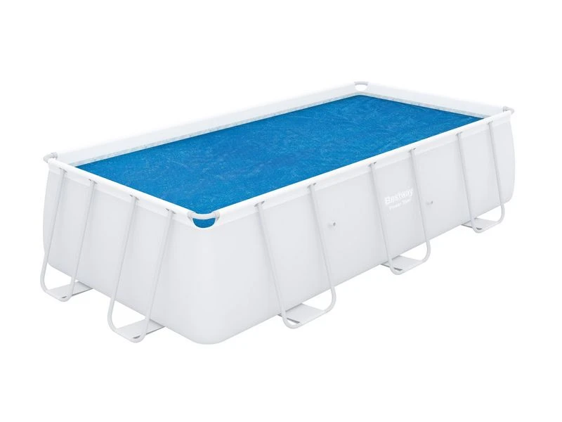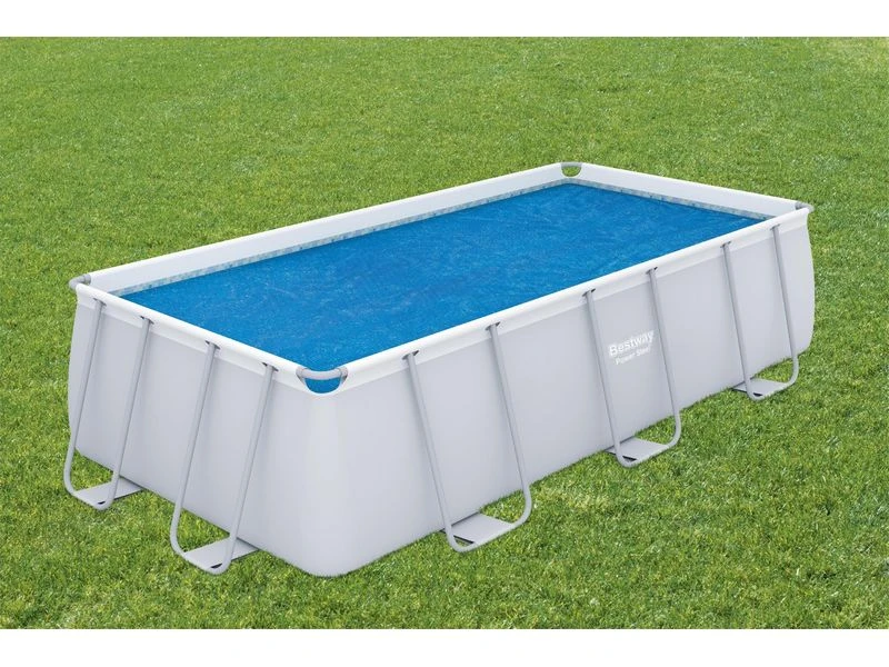 Zomerkleed voor rechthoekige zwembaden met een stalen frame (404×201 cm en 412×201 cm). Het kleed drijft op het water en dient iets kleiner te zijn dan de afmeting van het zwembad, om overtollig water af te voeren. Houdt de warmte vast en gaat vervuiling tegen. Afmeting: 380×180 cm.