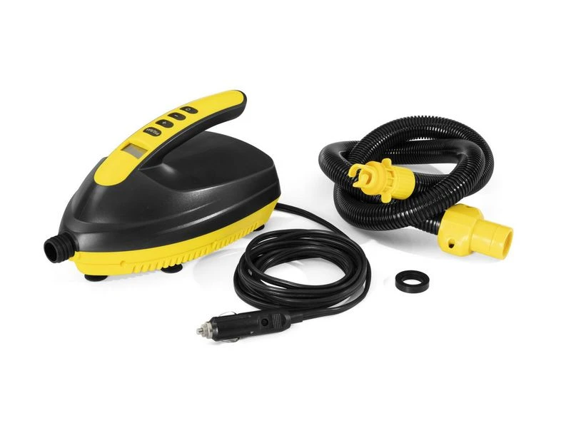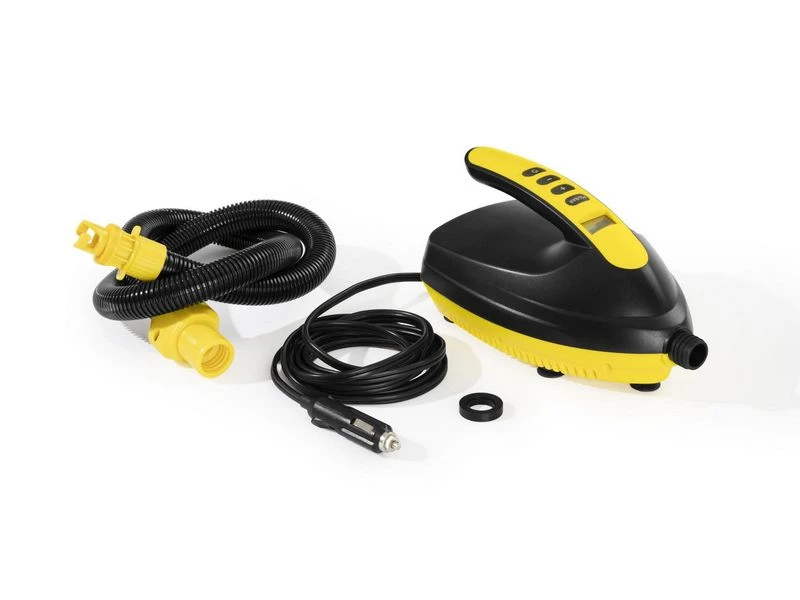 Electrische luchtpomp voor het opblazen van SUP boards of andere opblaasbare artikelen met een hogedruk ventiel. Aan te sluiten op de 12V aansluiting van auto of boot. Lichtgewicht en gemakkelijk mee te nemen. Incl. 275 cm kabel. Afmeting: 23,5x14x13 cm.