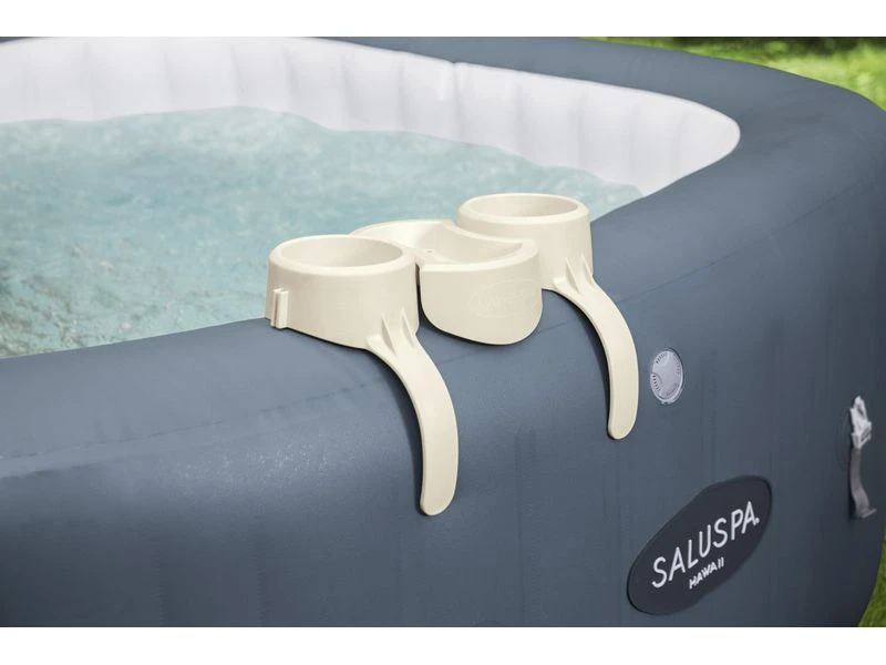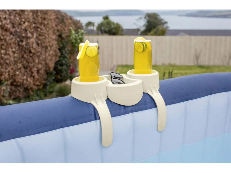 Bekerhouder, past op alle Lay-z-spa’s met uitzondering van Monaco, Vancouver en Helsinki. 2 houders met daartussen een bakje. Voor bevestiging aan de bovenrand. Houders kunnen ook apart gebruikt worden.