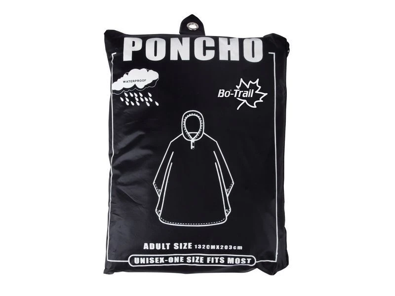 Duurzame EVA (PVC vrije) poncho met capuchon. Zeer compact mee te nemen en na gebruik snel en eenvoudig op te bergen in de bewaarhoes. Goed voorbereid op onverwachte situaties! Dicht te maken door middel van 5 drukknopen aan de zijkant. Universele maat.