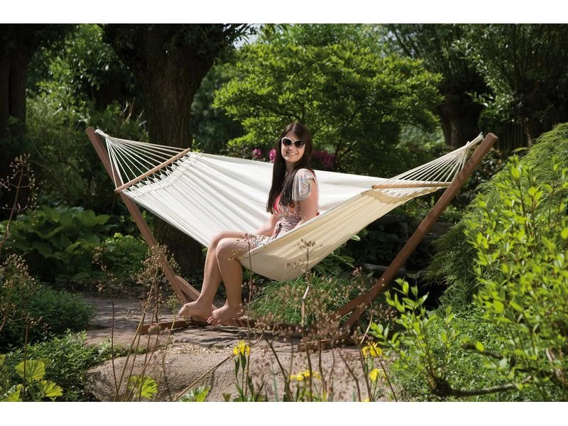 Door de spreidstok blijft de hangmat altijd mooi open staan.