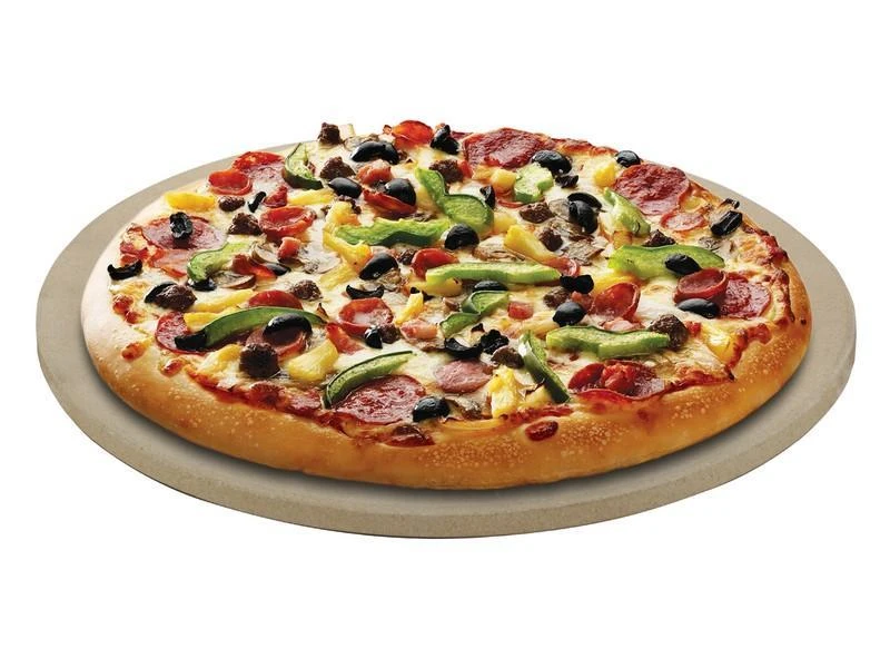Deze pizzasteen is tien millimeter dik en kan temperaturen tot 300 graden Celcius doorstaan. Hij is geschikt voor gasbarbecues, houtskoolbarbecues en elektrische ovens. De houder zorgt voor optimaal gebruiksgemak.