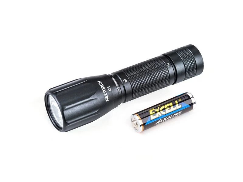 Verpakkingsinhoud: 1 NexTorch C1 Zaklamp, 1 AA Alkaline Batterij, 1 Polskoord