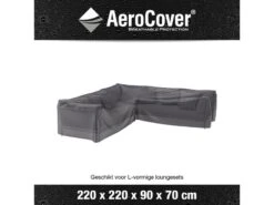 Loungesethoes voor hoeksets van AeroCover. Ademende loungesethoes voor loungeset in L-vorm 220x220x90xH70 met een 90° hoek. AeroCovers zijn ademend, waterbestendig, reduceren condensvorming en gaan schimmelvorming tegen. De stof heeft een hoge kleurechtheid dankzij de door en door geverfde vezels. Een AeroCover hoes verlengt de levensduur van uw tuinmeubelen. AeroCovers zijn vervaardigd van sterk en lichtgewicht ripstop polyester. Ze zijn makkelijk hanteerbaar en nemen weinig ruimte in wanneer niet in gebruik. De afdekhoes is voorzien van rijgkoord met 2 stoppers voor een goede pasvorm. Inclusief handige opbergtas. AeroCover stoffen zijn 100% waterdicht, de naden zijn, net als elke ander hoes, spatwaterdicht.