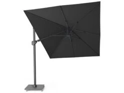 Dubbel kantelbare zweefparasol. 360 graden draaibaar. Uitgevoerd in spuncrylic.