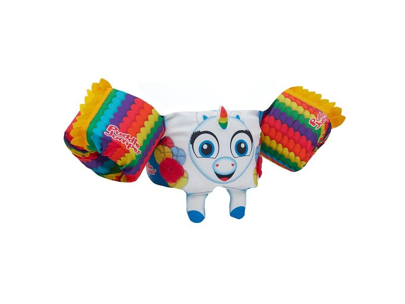 Onder het leuke ontwerp van de Puddle Jumper® schuilt een stevige constructie, gemaakt van duurzame en veerkrachtige materialen. Het kan op een snelle en ontspannen manier worden bevestigd door de ouders. Het duurt namelijk slechts enkele seconden voordat het kind op een veilige manier kan worden vastgemaakt met behulp de enkele verstelbare gesp aan de achterkant – geen geworstel meer met een ongelukkig kind aan de rand van het water.
