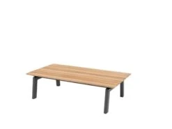 De rechthoekige Ravenna salontafel met teak tafelblad met antraciet aluminium frame van Taste 4SO. Deze salontafel heeft een afmeting van 120x65x35 cm. (BxDxH).