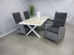 4 verstelbarestoelen met tuintafel : 186 x 96 cm.