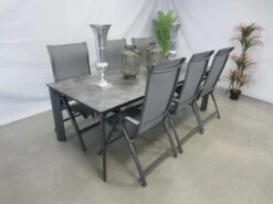 6 verstelbare tuinstoelen met tuintafel 220 x 95 cm.