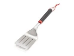 Probleemloos keren van burgers en steaks van de barbecue halen met deze roestvrijstalen spatel. Deze essentiële barbecue-accessoire is lang genoeg om je hand ver weg te houden van de warmte en is vaatwasserbestendig.